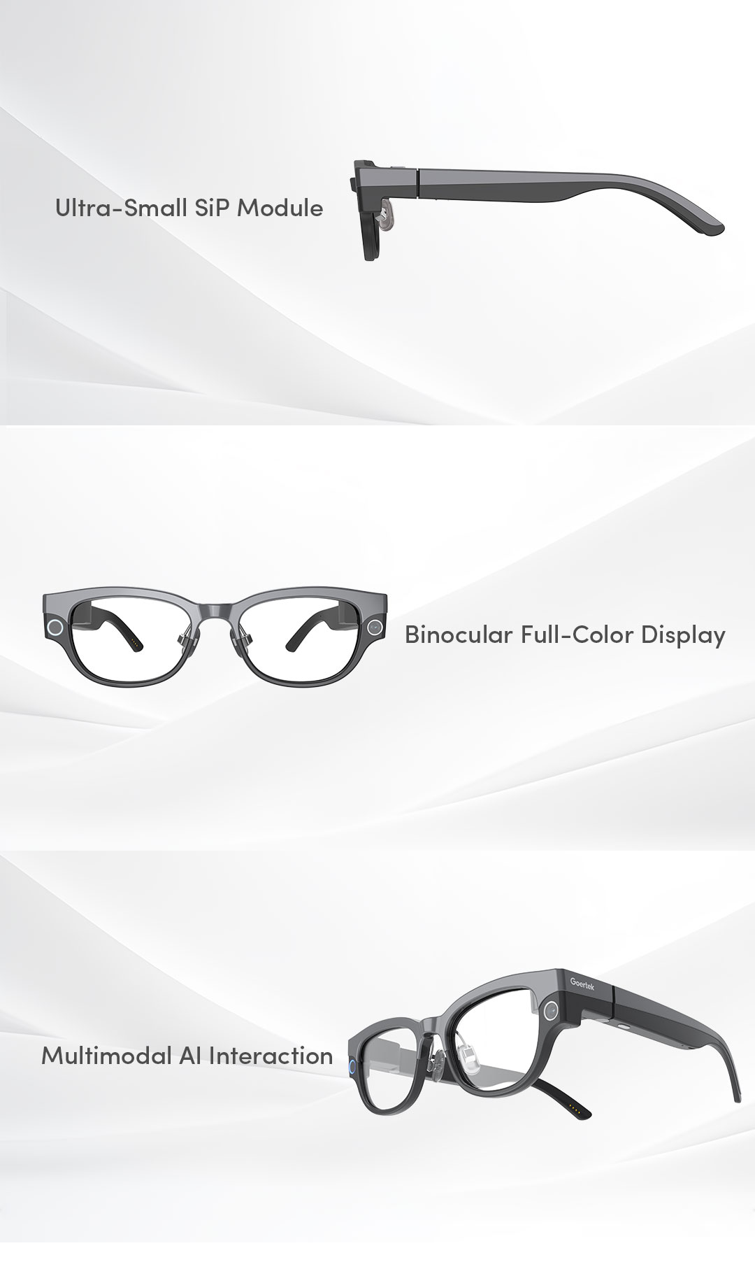 Based on the Qualcomm platform, this lightweight AR reference design adopts a Micro LED + diffraction waveguide optical display solution, supporting multimodal AI interaction, and provides consumers with an intuitive AI experience.
